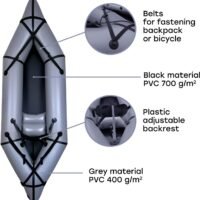 Packraft performance ultraléger (3.5 kg, TPU double couche, poche cargo)
