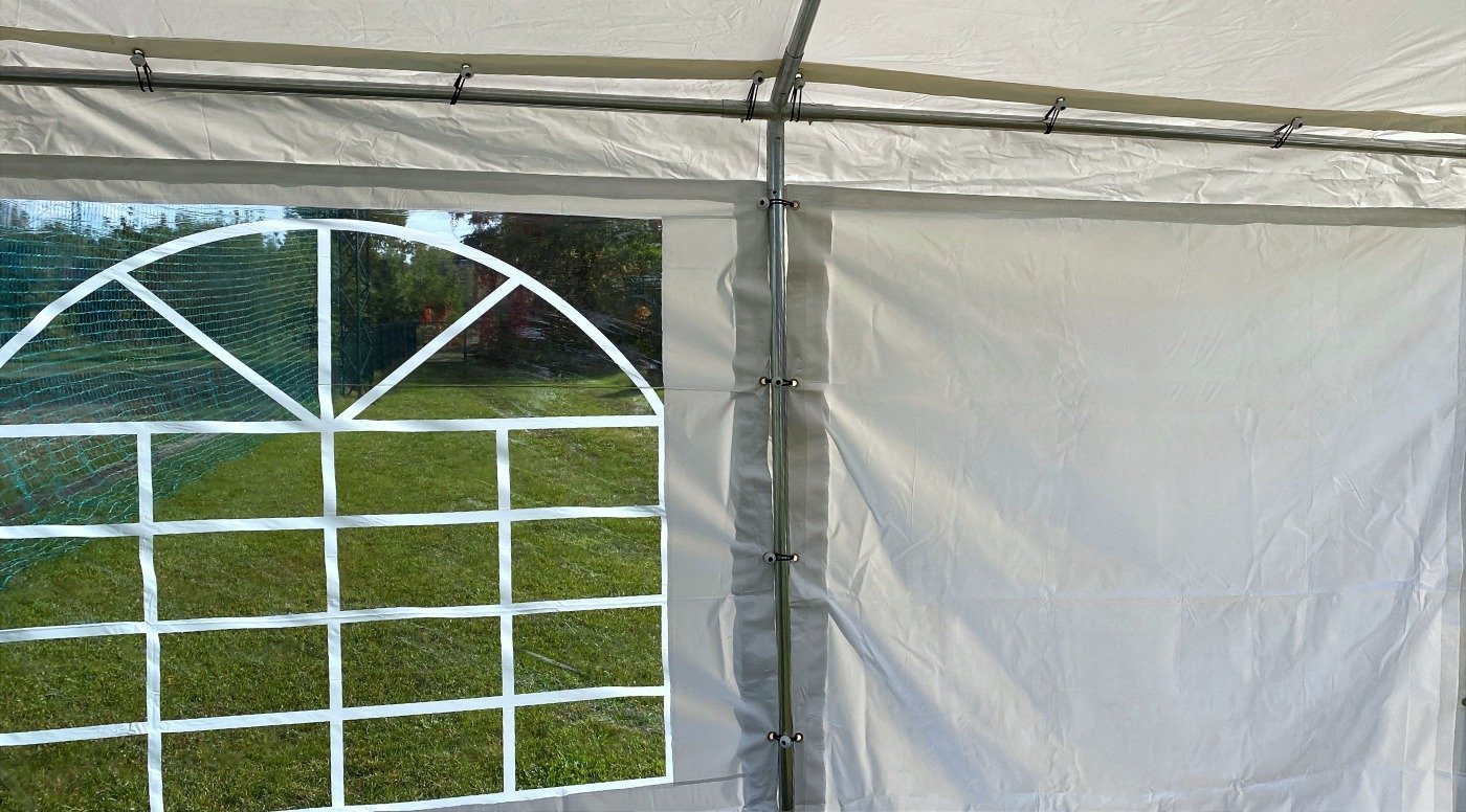 - Ściany boczne SD PVC ok. 2 x 2 m (polichlorek winylu) 500g/m2 – Okna witrażowe 140 x 130 cm