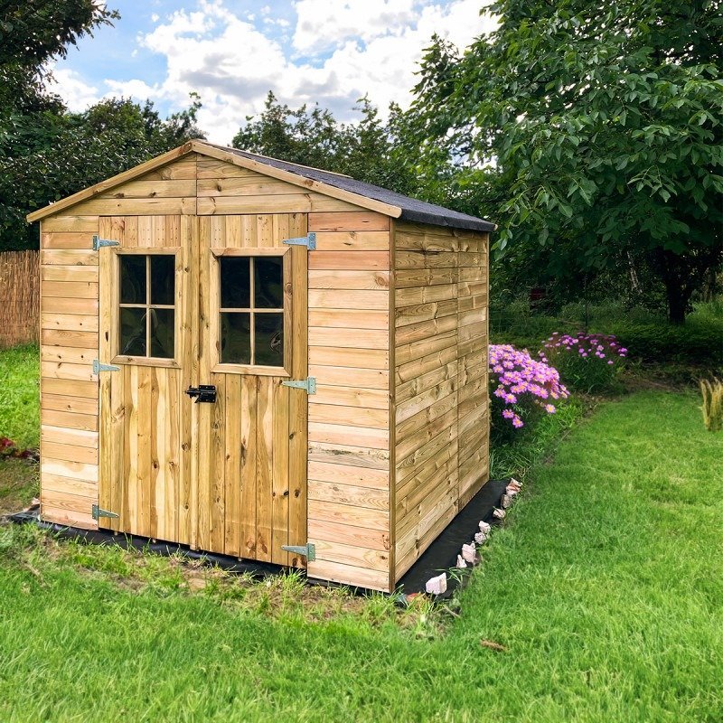 Duży drewniany domek narzędziowy stworzy idealne miejsce do przechowywania wszelkich urządzeń, które wykorzystujesz sezonowo. Wykorzystanie naturalnych materiałów – impregnowanego drewna – sprawia, że domek narzędziowy wpisze się w każdy ogród. Możesz go także wykończyć według własnego uznania.