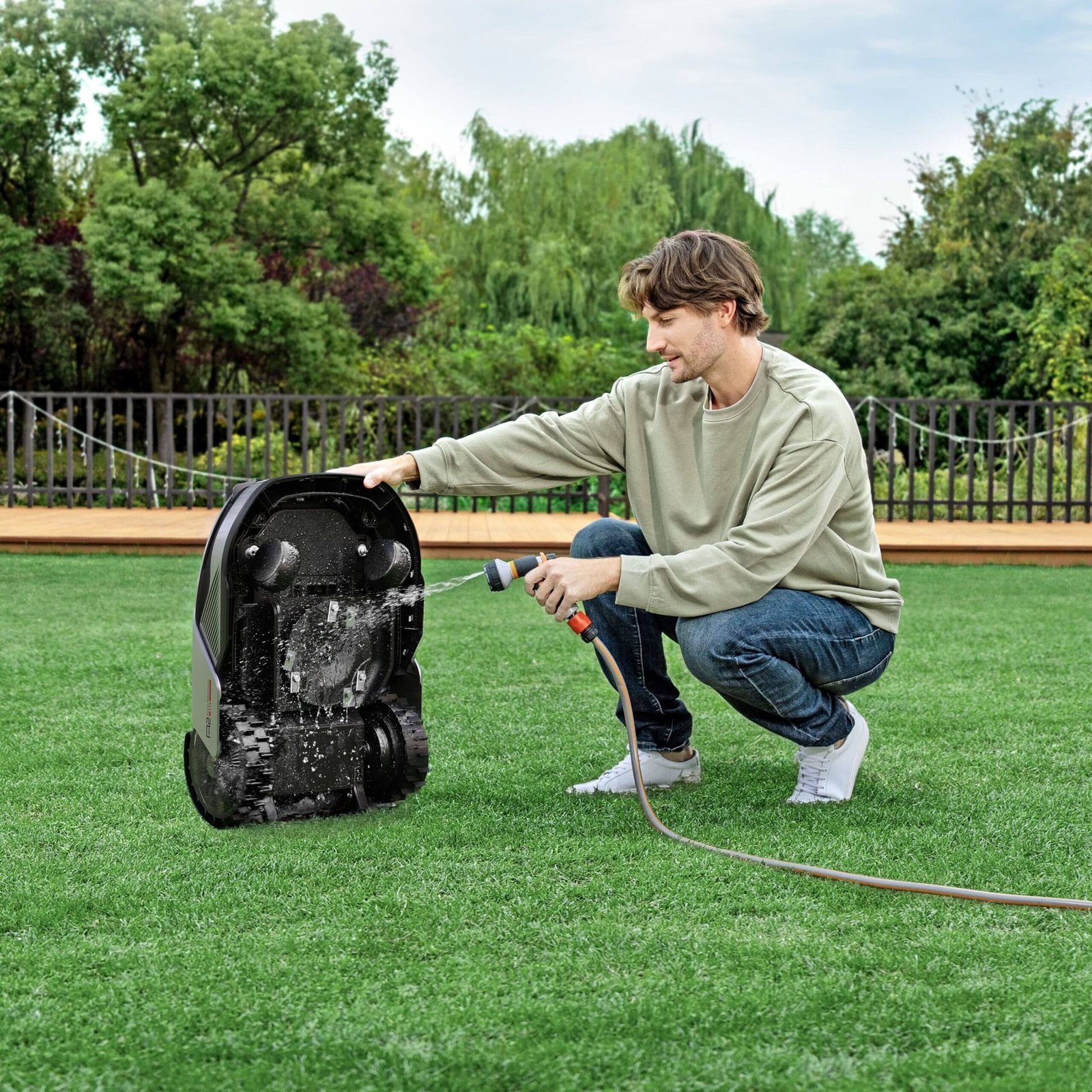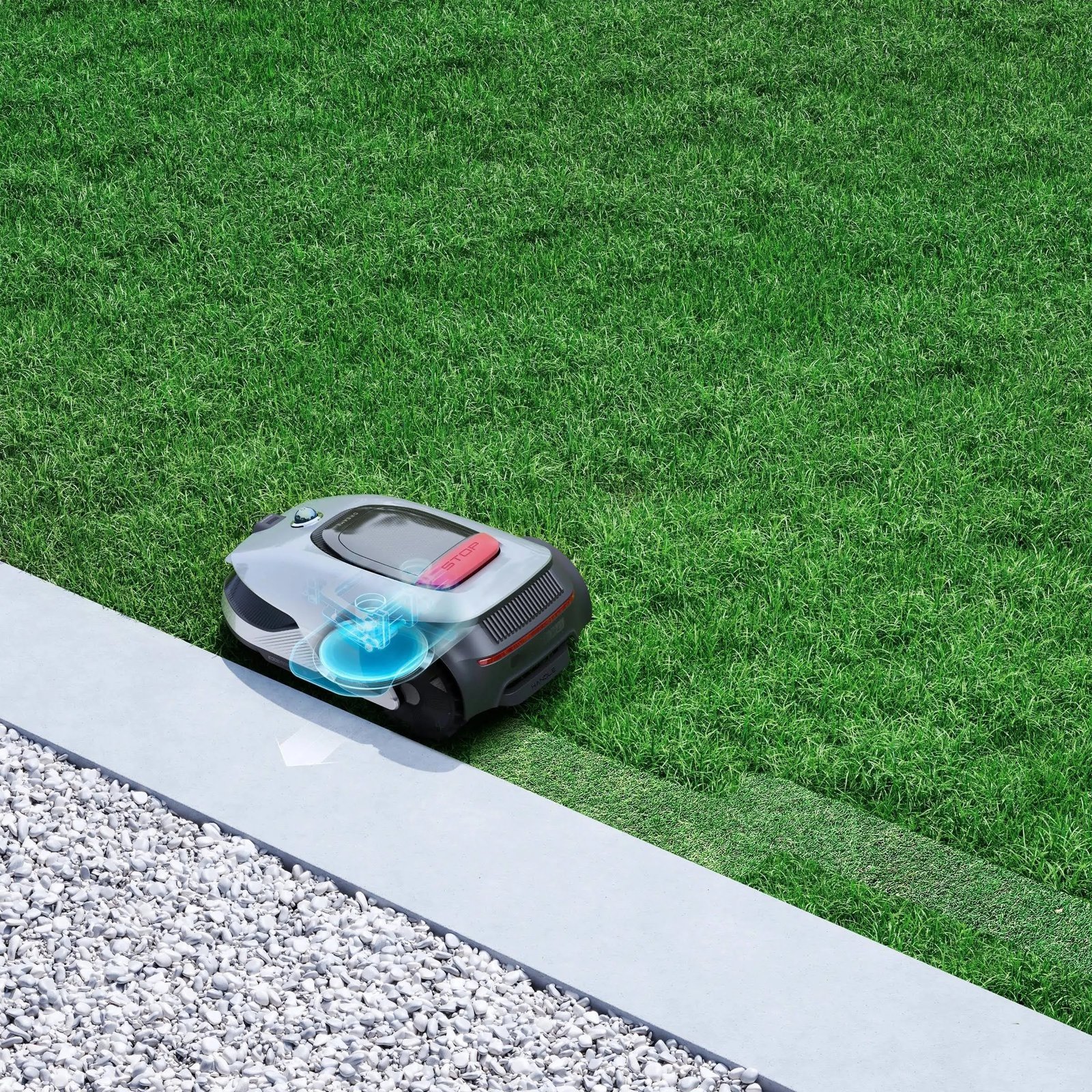 Zaawansowana technologia EdgeMaster™ zapewnia precyzyjne przycinanie trawy aż po same krawędzie. Dzięki zaawansowanemu systemowi tarcza tnąca automatycznie rozszerza się podczas pracy, co minimalizuje odległość cięcia od brzegu do zaledwie 5 cm. Połączenie tego rozwiązania z inteligentnym planowaniem tras w kształcie litery U gwarantuje równomierne i dokładne pokrycie całej powierzchni ogrodu – także w trudno dostępnych miejscach. W efekcie Twój trawnik będzie prezentował się nienagannie bez konieczności ręcznego wyrównywania brzegów. Urządzenie jest w stanie obsługiwać powierzchnie do 1000 m² w ciągu doby w trybie Standard lub do 2000 m² w trybie Efficient, więc sprawdzi się zarówno w mniejszych, jak i większych posesjach.