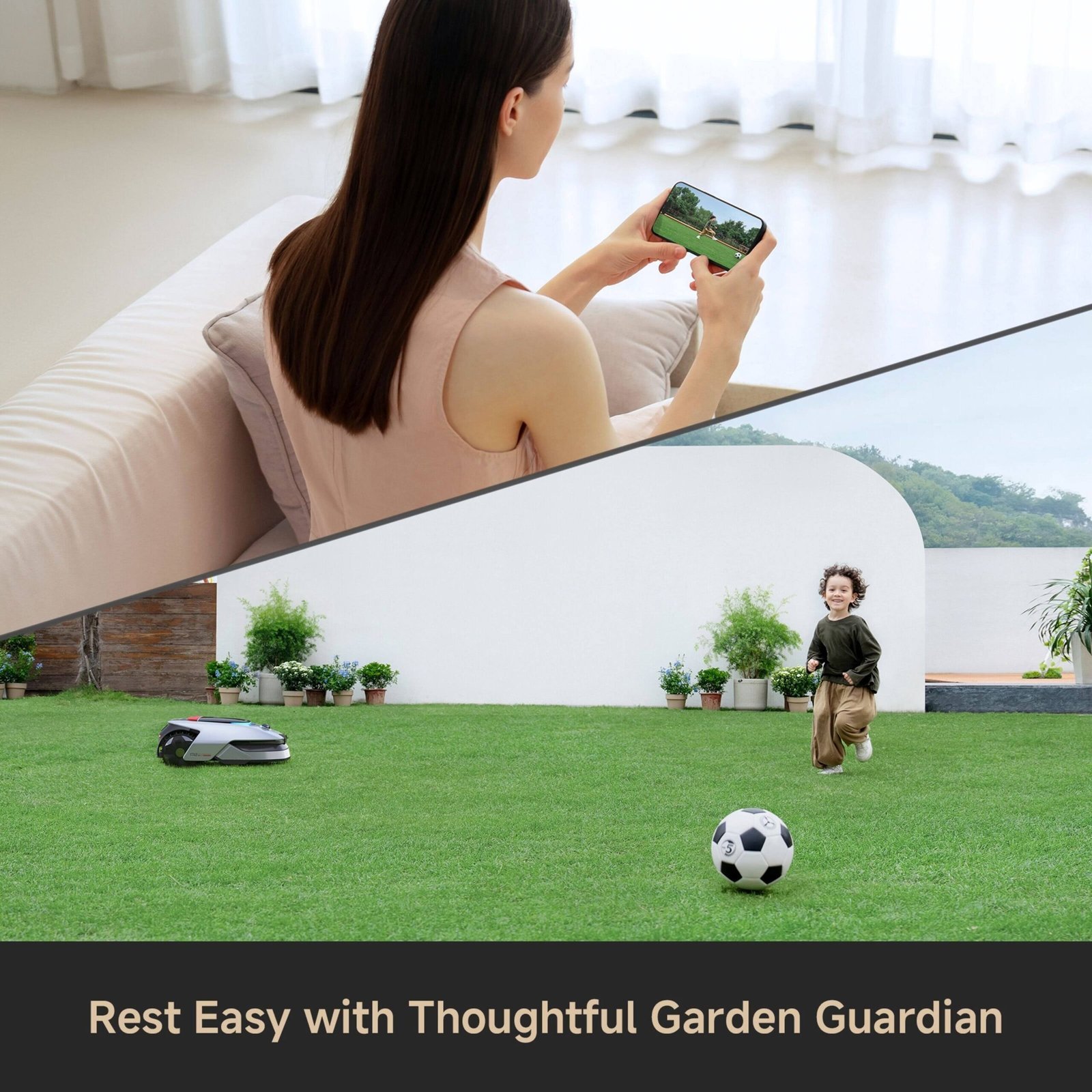 Funkcja Garden Guardian zapewnia pełne bezpieczeństwo i kontrolę nad Twoim ogrodem. Dzięki monitorowaniu w czasie rzeczywistym możesz na bieżąco obserwować otoczenie z poziomu dedykowanej aplikacji. Robot umożliwia ustawienie trybu patrolu poza godzinami pracy, zapewniając dodatkową ochronę w wybranych porach. System automatycznie wysyła powiadomienia, gdy wykryje aktywność człowieka, dzięki czemu możesz natychmiast reagować na nietypowe zdarzenia.