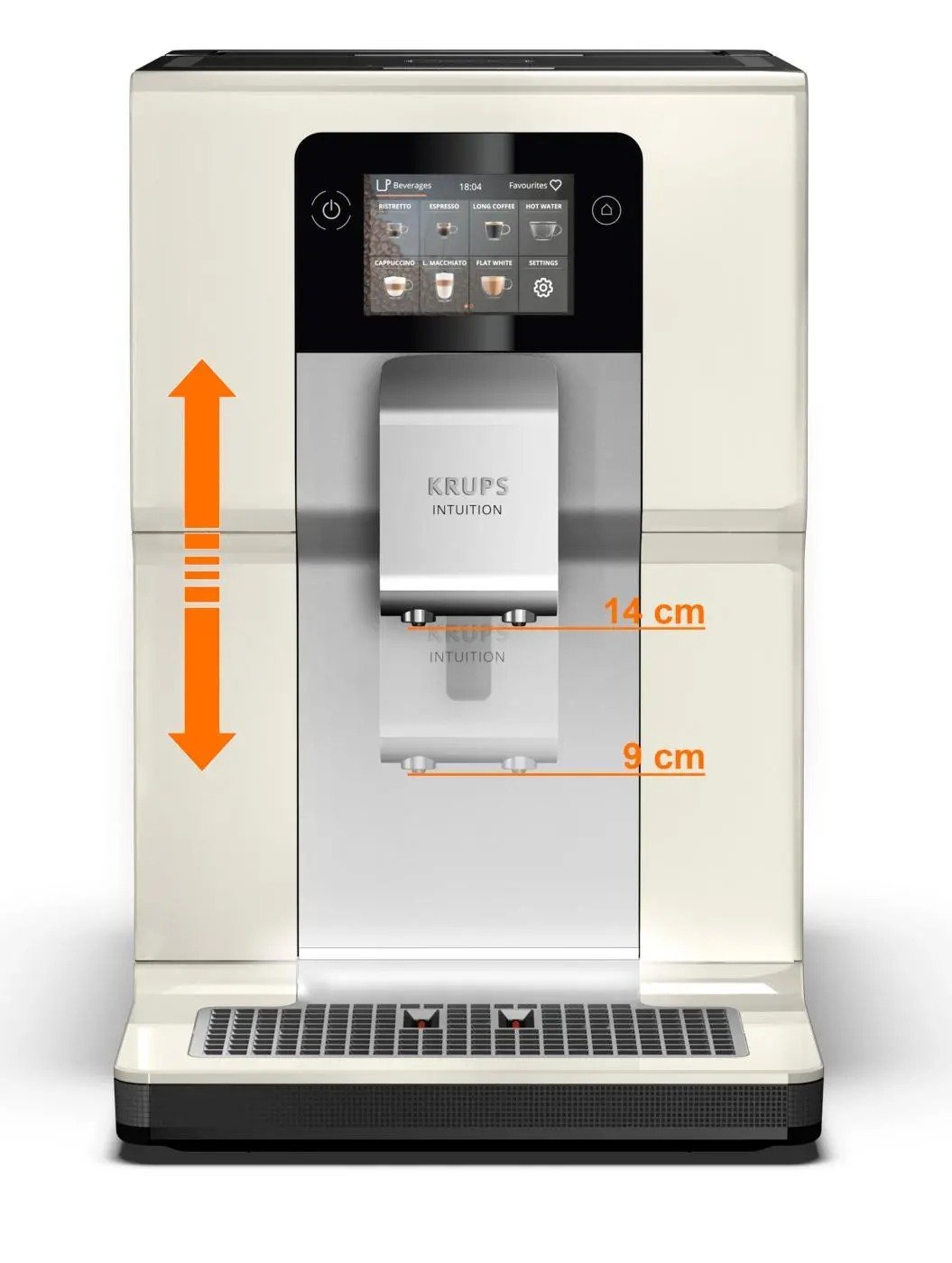 Masz ochotę na mocne espresso w filiżance, a za chwilę na dużą kawę w ulubionym kubku? To żaden problem – ekspres oferuje regulację wysokości dyszy, dzięki której precyzyjnie zaparzysz kawę w naczyniach o różnej wielkości i unikniesz rozchlapywania napoju.
