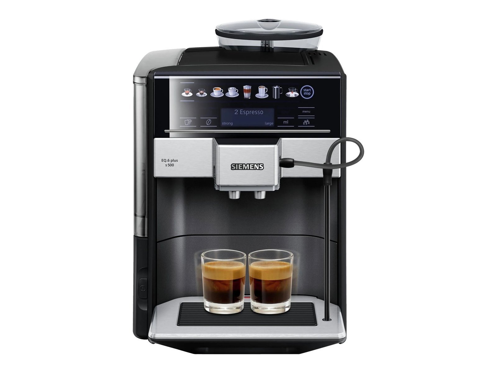Wyśmienity smak i aromat, atrakcyjny design i wyjątkowo prosta, intuicyjna obsługa – jednym słowem EQ.6 plus marki Siemens. Wszystko co musisz zrobić, to włączyć urządzenie, a na wyświetlaczu natychmiast pojawią się wizerunki specjałów z kawy i mleka. Wystarczy delikatne dotknięcie i już możesz cieszyć się wyśmienitą kawą, a nawet zażądać dwóch filiżanek jednocześnie. Ważnym atutem jest też funkcja autoMilk Clean,czyli automatyczne czyszczenie spieniacza mleka po zaparzeniu kawy mlecznej (uderzenie pary).Maksimum aromatu dzięki idealnej temperaturze parzenia: inteligentny system sensoFlowKawę należy parzyć zawsze w odpowiedniej temperaturze – to najlepszy sposób na pełne rozwinięcie aromatu kawy. Idealna temperatura parzenia perfekcyjnego espresso mieści się w przedziale od 90 do 95°C. Tylko ekspresy EQ z niepowtarzalnym systemem sensoFlow zapewniają utrzymanie najwłaściwszych warunków podczas przygotowywania kawy. Za najszybszy i najskuteczniejszy sposób uzyskania doskonałego espresso odpowiadają sensory kontrolujące temperaturę przez cały proces przygotowywania naparu.Cała różnorodność smaków, za jednym dotknięciem