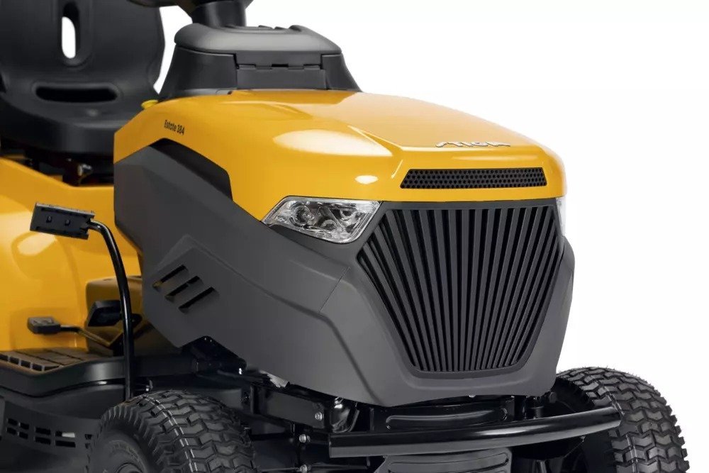 Silnik STIGA o mocy netto 6,8 kW przy 2400 obr./minSTIGA Estate 384 jest napędzany silnikiem spalinowym STIGA o mocy netto 6,8 kW przy 2400 obr./min. Traktor jest wyposażony w przekładnię hydrostatyczną obsługiwaną nożnie, która pozwala na sterowanie prędkością jazdy do przodu bez konieczności zmiany biegów. Agregat koszący ma 84 cm i 2 noże. Można go ustawić na 1 z 7 wysokości koszenia, w zakresie od 25 mm do 80 mm. Traktor wyposażono w elektromagnetyczne sprzęgło włączania noży, które obsługuje się jednym przyciskiem. Kosiarka Estate 384 ma 240-litrowy kosz na trawę i można jej używać z funkcją STIGA Multiclip. Nowa ergonomiczna kierownica STIGA współpracuje z nowym regulowanym siedziskiem STIGA z wysokim oparciem, zapewniając komfort jazdy. Zaczep i wkładka mulczująca w zestawie. Ładowarka akumulatora do nabycia osobno.