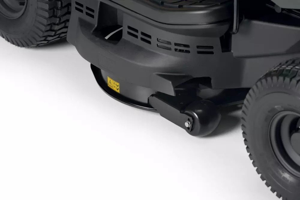 - Agregat koszący o szerokości roboczej 84 cm i 2 koła zapobiegające skalpowaniu trawnika