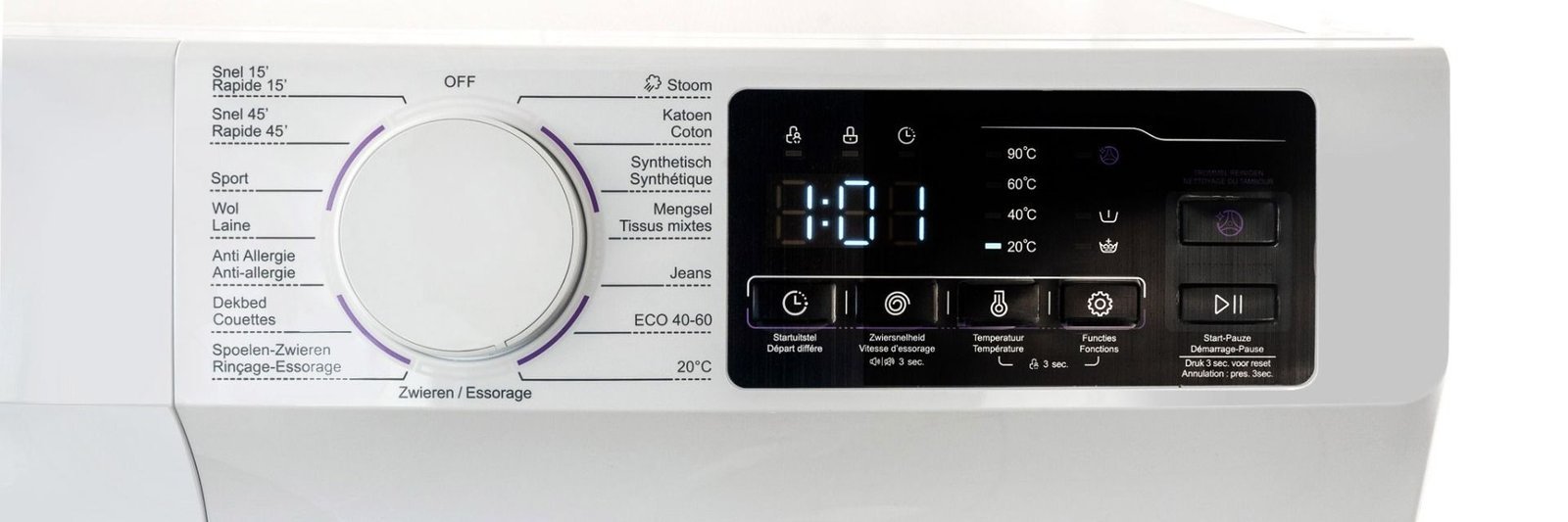 - Uitgestelde start: Met deze functie kun je het wasprogramma laten beginnen op een eerste dat jou het beste is geselecteerd.