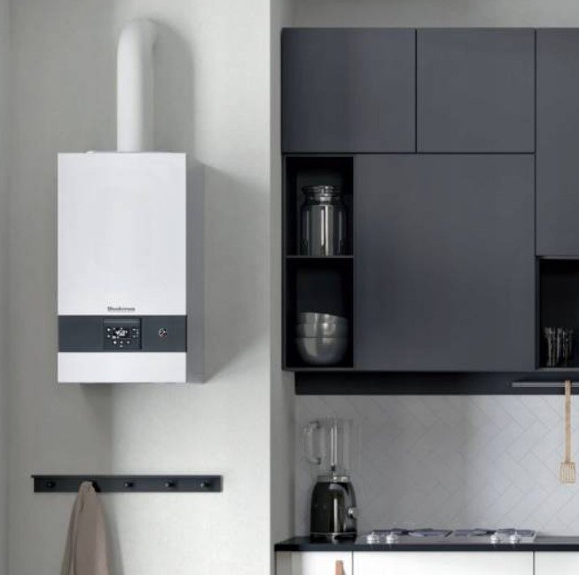 Kocioł gazowy kondensacyjny dwufunkcyjny Buderus Logamax plus GB022-20K to nowoczesne urządzenie grzewcze przeznaczone do ogrzewania pomieszczeń oraz przygotowania ciepłej wody użytkowej. Zastosowana technologia kondensacyjna pozwala na maksymalne wykorzystanie energii zawartej w spalinach, co znacząco zwiększa sprawność kotła i obniża zużycie gazu. Urządzenie charakteryzuje się kompaktową budową, cichą pracą oraz wysokim poziomem niezawodności, dzięki czemu idealnie sprawdza się zarówno w mieszkaniach, jak i w domach jednorodzinnych.