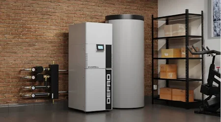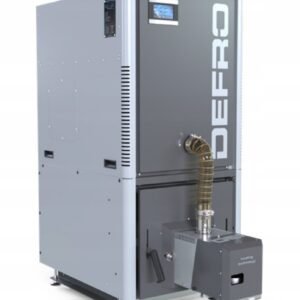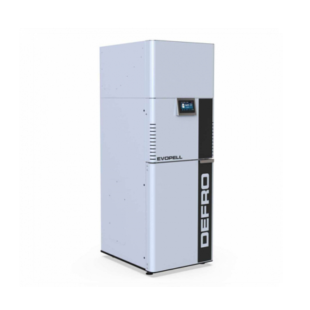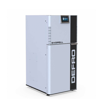 Kocioł Defro Evopell 8 kW ten kompaktowy kocioł z koszem na pellet umieszczonym nad kotłem zajmuje około 1 m2. Jest wyposażony w moduł internetowy, dzięki czemu można go zdalnie kontrolować i regulować z dowolnego miejsca na świecie. Kocioł jest wpisany na listę ZUM KB-600697
