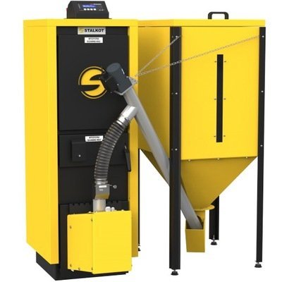 • w modelu 8 kW – zintegrowany zasobnik paliwa. Pozostałe modele tej serii posiadają zewnętrzny kosz zasypowy