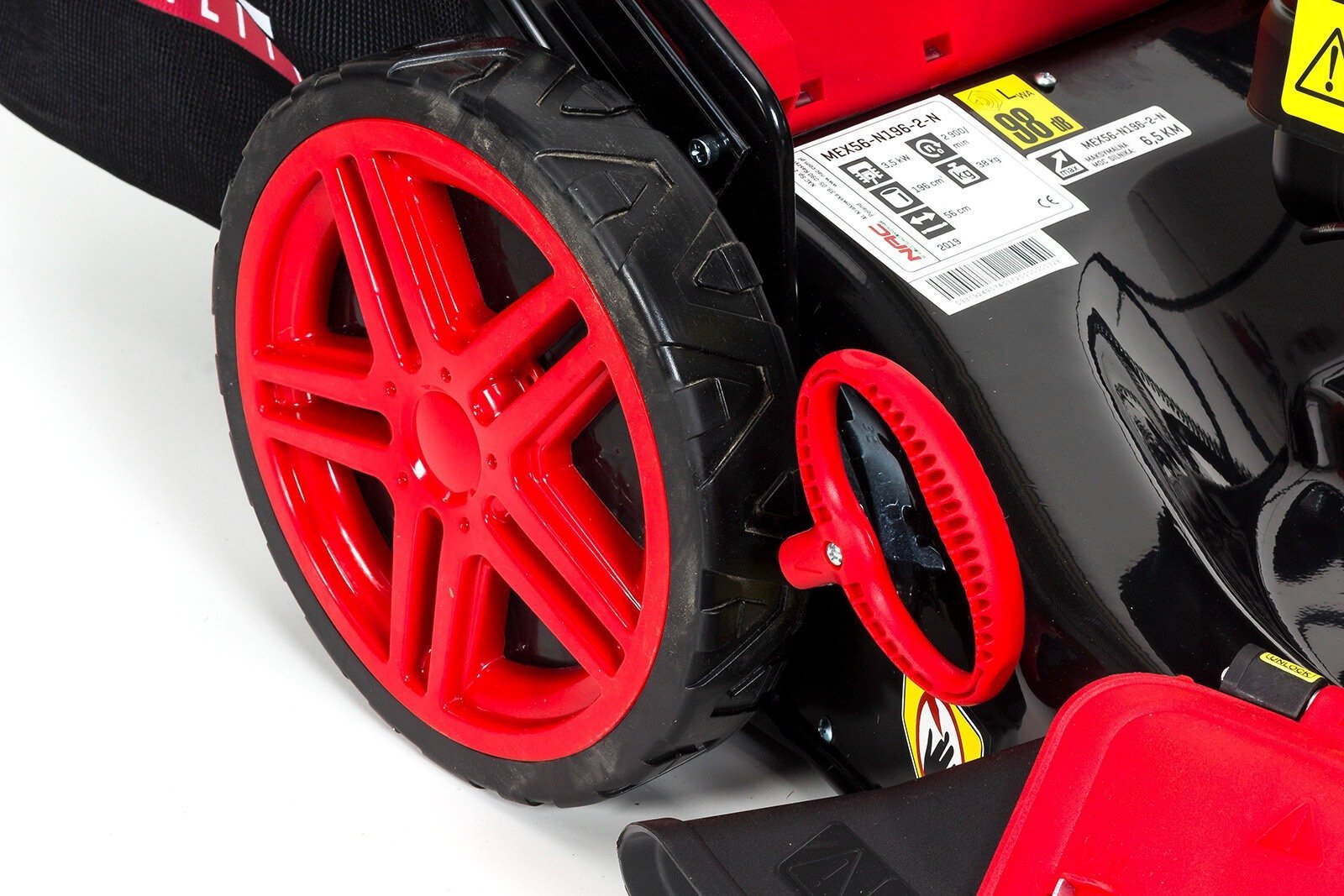 Dużym atutem kosiarki NAC MEX56-N196-2 jest obecność sześciostopniowej regulacji wysokości koszenia. Dzięki temu jeszcze lepiej można dostosować sprzęt do własnych potrzeb, a także koszonej powierzchni. Zakres regulacji koszenia mieści się w granicach od 25 mm do 75 mm. Natomiast szerokość koszenia wynosi 560 mm.