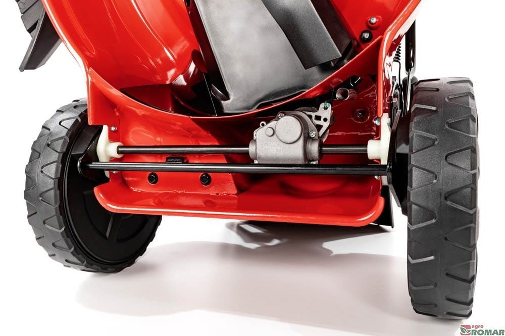Koła zostały zaprojektowane z myślą o zapewnieniu maksymalnej wygody manewrowania, stabilności i płynności pracy na różnych rodzajach podłoża. Tylne koła o dużej średnicy 11 cali (28 cm) oraz przednie koła o średnicy 8 cali (20 cm) sprawiają, że kosiarka doskonale radzi sobie zarówno na równym trawniku, jak i na bardziej wymagających, nierównych terenach.