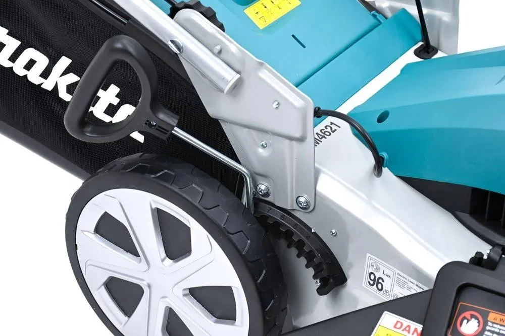 Ontdek de Makita ELM4621 elektrische grasmaaier, perfect voor middelgrote tot grote tuinen.