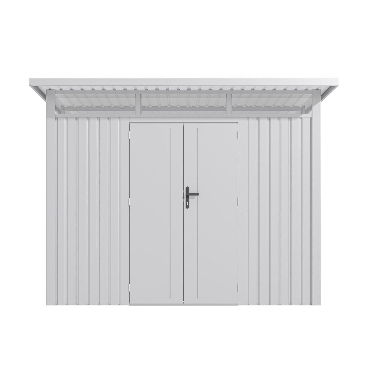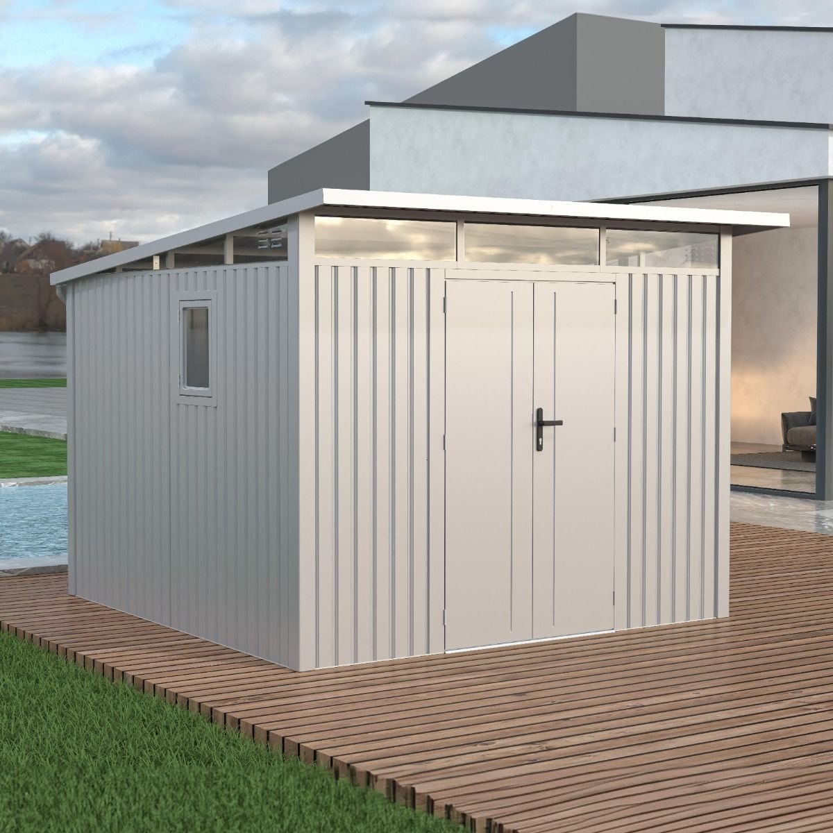 Het Rockford Porto 400 metalen tuinhuis is met een stijlvolle lichtgrijze afwerking, perfect voor extra opbergruimte buitenshuis. Met zijn afmetingen van 296 x 318 x 220 cm biedt het een ruime opbergruimte van 7,45m². Het unieke ontwerp maakt het mogelijk om het raam aan de linker- of rechterzijde te plaatsen, afhankelijk van de behoeften en de indeling van de tuin. Dit tuinhuis is voorzien van een dikke, krasbestendige poedercoating die duurzaamheid en weerbestendigheid garandeert. De constructie is eenvoudig met de meegeleverde schroeven en pluggen. Ook worden er 4 regenpijpen meegeleverd voor een effectieve afwatering. Het raam gemaakt van polycarbonaat, biedt natuurlijk licht binnenin, terwijl het lessenaarsdak zorgt voor een moderne uitstraling.