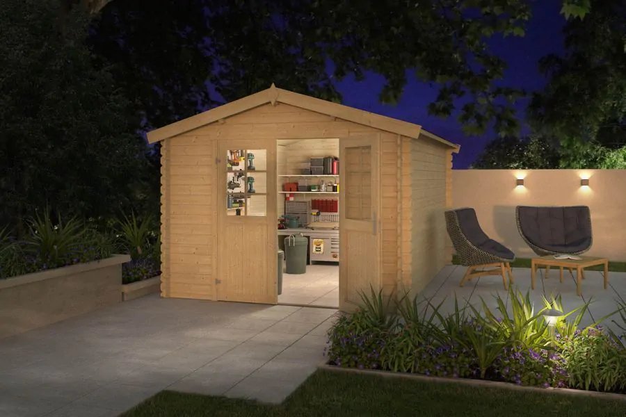 De blokhut kan dienen als een opslagplaats voor uw tuingereedschap of het opbergen van uw tuinmeubelen in de winter. Door een dakgotenset toe te voegen aan uw blokhut, heeft u een goede afwateringsysteem van het regenwater.
