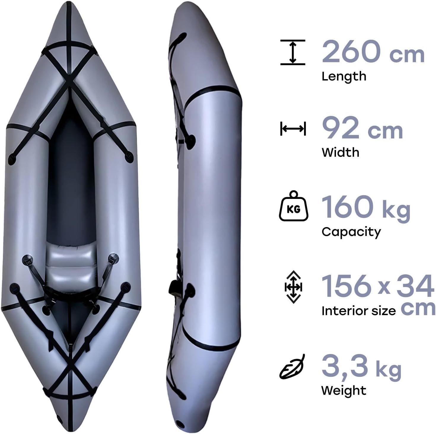 Packraft performance ultraléger (3.5 kg, TPU double couche, poche cargo)