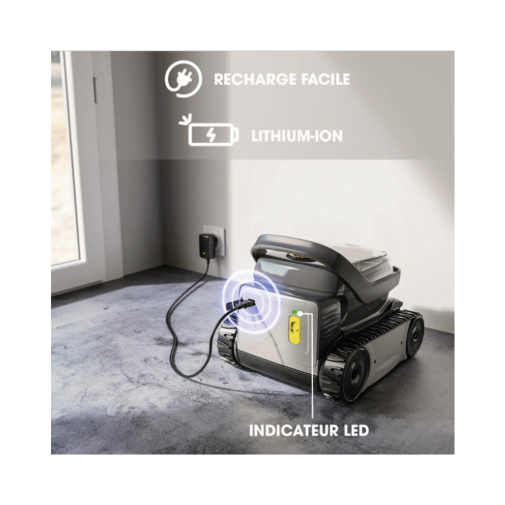 - Nettoyage efficace du fond : adapté aux fonds à pente douce, il nettoie le sol de votre piscine en un cycle de 1h30. Sa brosse intégrée décolle les saletés et son filtre de 150 microns retient les impuretés pour un résultat impeccable.