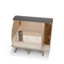 Dostarczamy saunę w opakowaniu ochronnym, co pozwala na przechowywanie jej na zewnątrz w oczekiwaniu na montaż. Jednak ze względu na niską zawartość wilgoci w drewnie (14%) będzie ono wchłaniać wilgoć z powietrza, co może powodować skręcanie drewna, dlatego zalecamy jak najszybszy montaż sauny. Rozmiar opakowania – (długość/szerokość/wysokość m) 2,4/1,2/1,0 i waga 760 kg. Co oznacza, że zestaw można transportować minibusem lub na przyczepie. Rozładunek można przeprowadzić ręcznie w ciągu 20 minut.