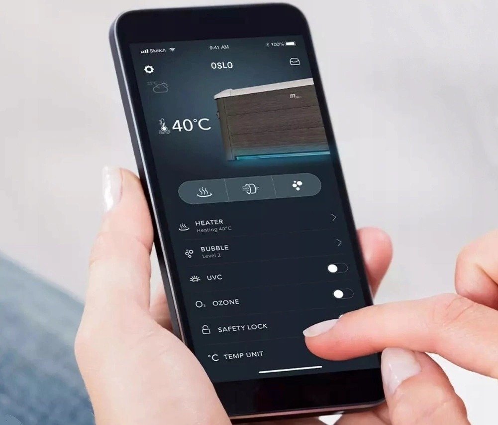 Modele MONO, OSLO, TRIBECA, NAVAL i DUET są wyposażone w funkcję Bluetooth. Możliwe jest więc korzystanie z dedykowanej aplikacji do sterowania wanną spa.