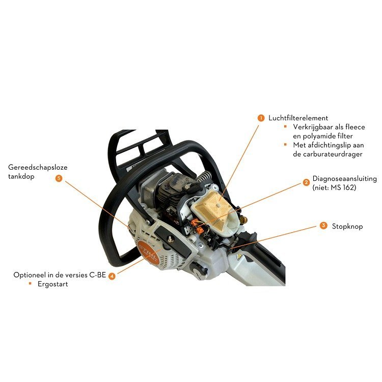 De krachtige klauw maakt je werk nog eenvoudiger door een goede grip op het hout te bieden, waardoor je gemakkelijk nauwkeurige zaagsneden kunt maken. Als je werk moet onderbreken, kun je de STIHL kettingzaag snel weer minimalistisch dankzij de combihendel met stopfunctie. Met de zijdelingse kettingspanner kun je de ketting gemakkelijk en veilig aanspannen. De MS 212 kettingzaag is tevens uitgerust met een diagnoseapparaat, wat zorgt voor eenvoudiger onderhoud.