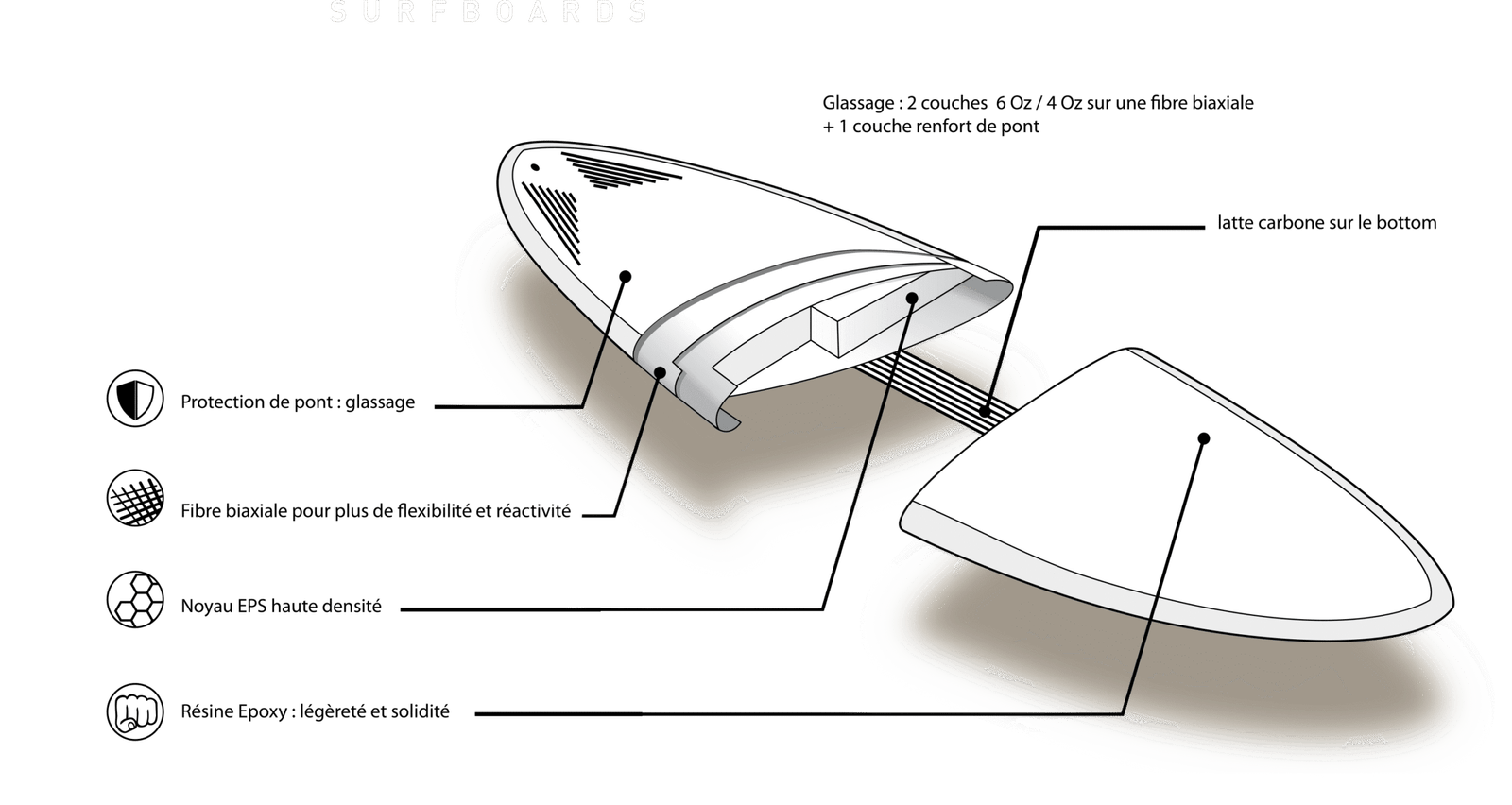 Construction : EPS haute densité + stratification Carbone