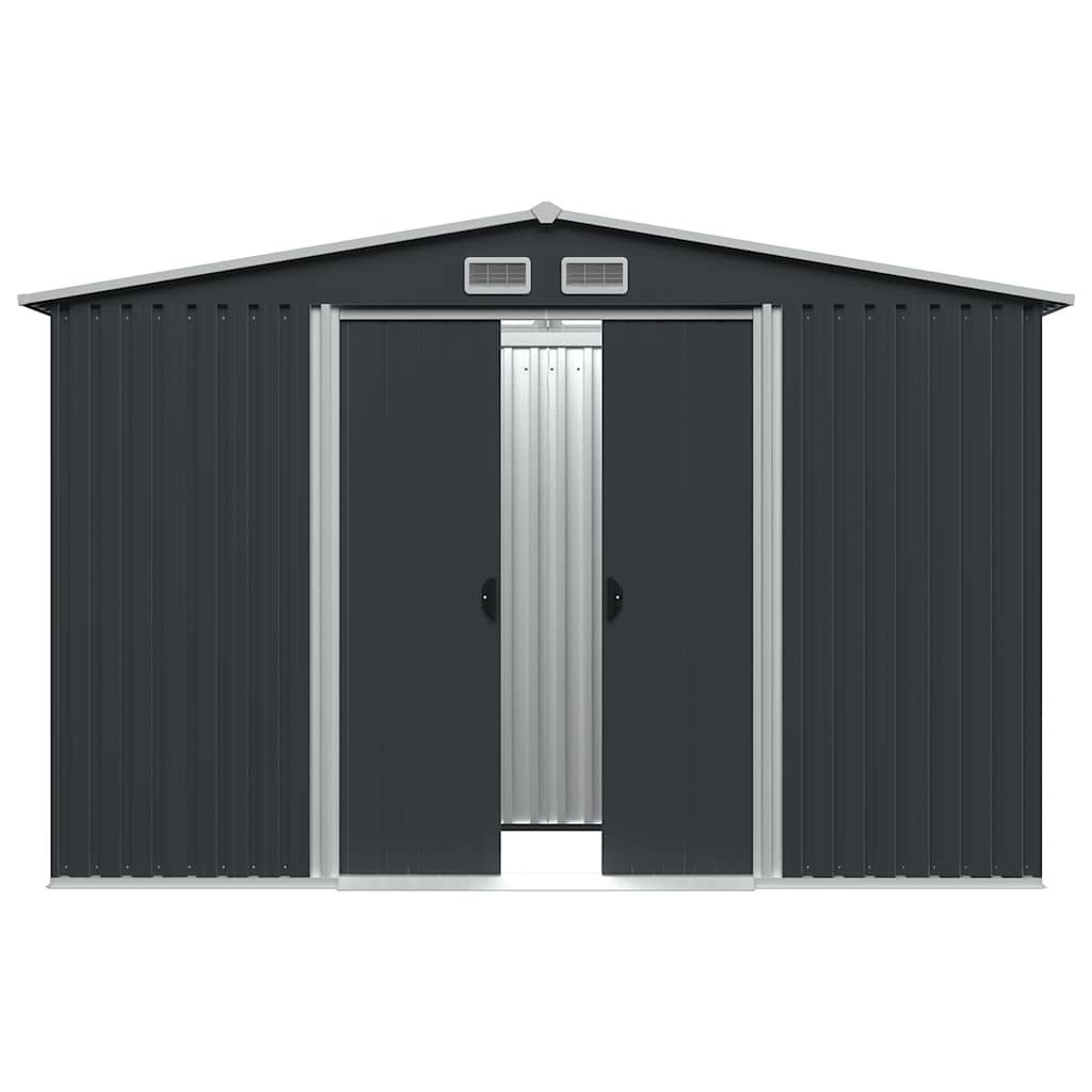 - Praktisch ontwerp: Deze opbergschuur heeft 4 ventilatieopeningen, 2 aan de voorkant en 2 aan de achterkant, voor uitstekende ventilatie. De dubbele schuifdeuren aan de voorkant zorgen voor gemakkelijke in- en uitgang.